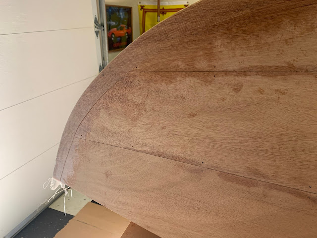Today I will scrape and sand the tape in preparation for the entire outside to be glassed.